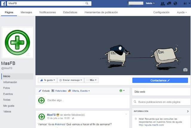Así vemos nuestra página de MasFB: