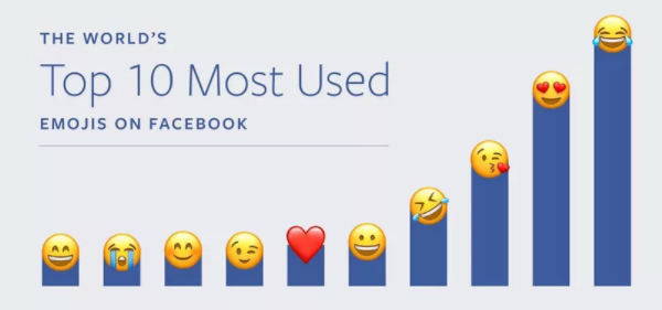 A primera vista, se puede notar que el emoji que más se usa en Facebook es el de la carita que se ríe tanto que llora. De hecho, seis de los 10 emojis más populares muestran momentos de felicidad, mientras que los tres con corazones seguro se publicaron para compartir sentimientos de amor y cariño. Sólo un emoji, el de la carita llorando en voz alta, resaltó sentimientos de tristeza.